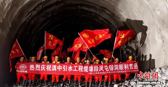 中新网楚雄10月29日电 (孙丽 向津磊)28日,随着中铁十六局承建的凤屯隧洞最后一段岩体成功爆破,滇中引水一期工程楚雄段实现全线贯通,为工程全线通水筑牢基础。