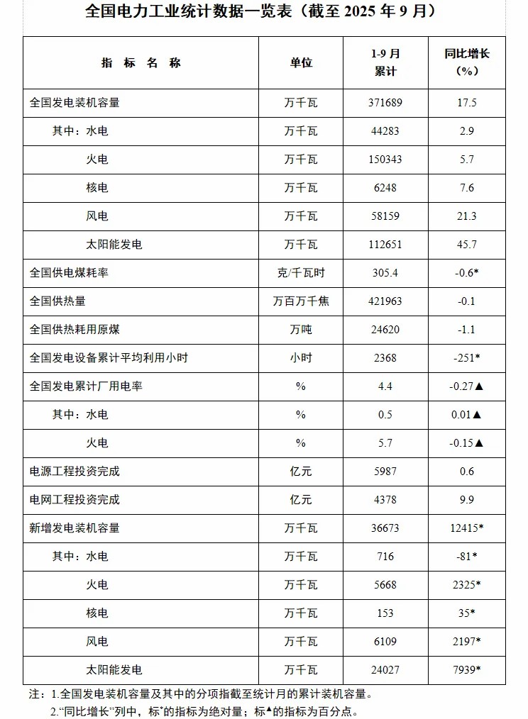 据“国家能源局”微信公众号消息,10月26日,国家能源局发布1-9月份全国电力工业统计数据。