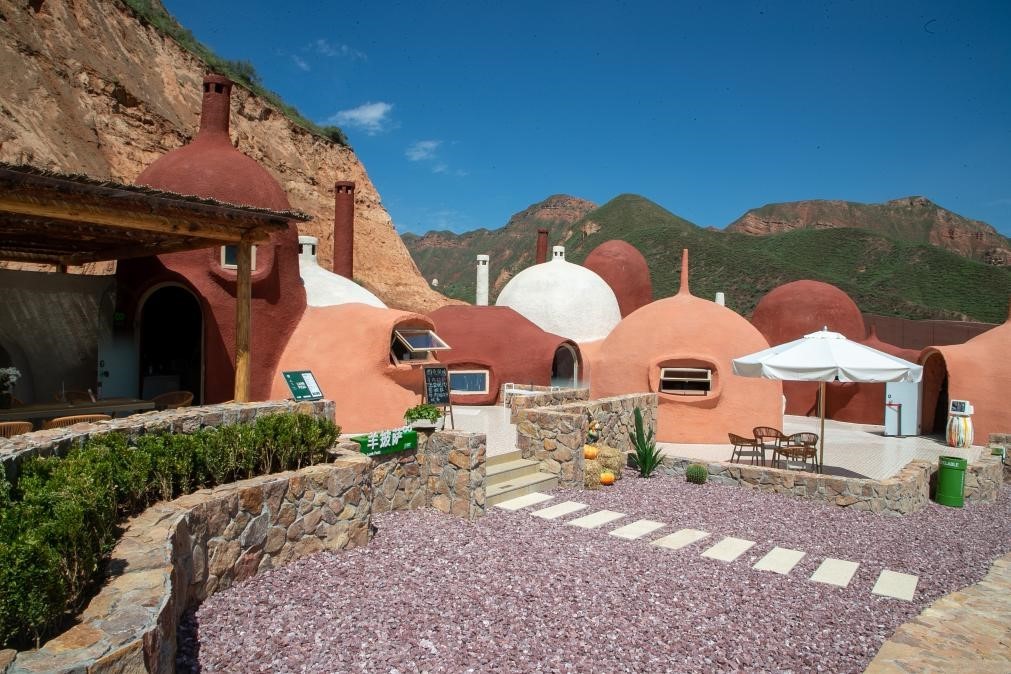 兰州水墨丹霞旅游景区的“白日梦中心”一角。新华社记者 郎兵兵 摄