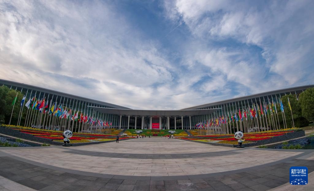 这是装饰一新的国家会展中心(上海)南广场(11月3日摄)。