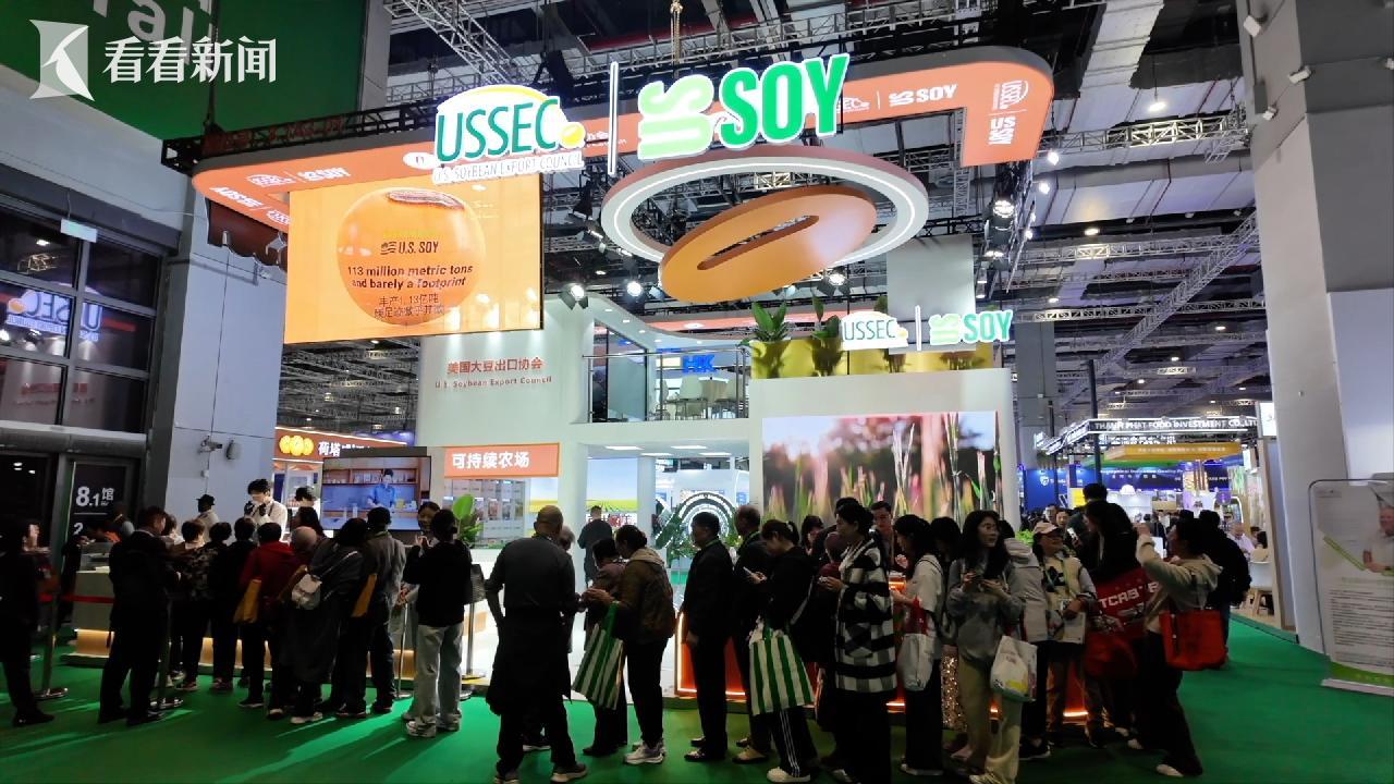 苏健说的不是客套话。进博会一开始,他的行程就满满当当——开馆剪彩、客商对接、媒体专访。他的身后,是一群带着中文名片、中文宣传资料的豆农,卖力带货。“正如大家在现场看到的,我们可以把大豆加工成大豆油,这种油品更适合高温烹饪。”美国豆农盖思凯说。