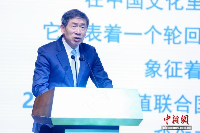 11月13日,联合国开发计划署(UNDP)在北京举办成立60周年招待会。图为联合国副秘书长、联合国开发计划署代理署长徐浩良致辞,呼吁各方秉持团结精神,拿出更大决心,应对全球发展挑战。(UNDP供图)
