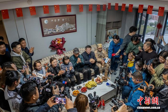 图为陈冬父母及亲友等鼓掌欢迎航天员陈冬顺利出舱。中新社记者 李超庆 摄