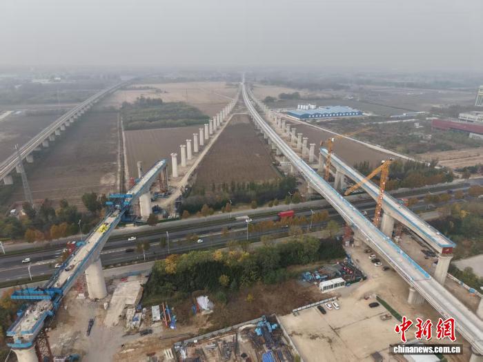 中新网济南11月16日电 (记者 沙见龙)由中铁十局承建的济青高铁潍东上行联络线跨蓝天路连续梁及跨省道222连续梁,于16日顺利实现合龙。此次两桥合龙标志着该联络线建设取得突破性进展,不仅为济青高铁与津潍高铁的后续“牵手”奠定关键基础,更为青岛、东营、滨州等城市间的互联互通注入强劲动力。
