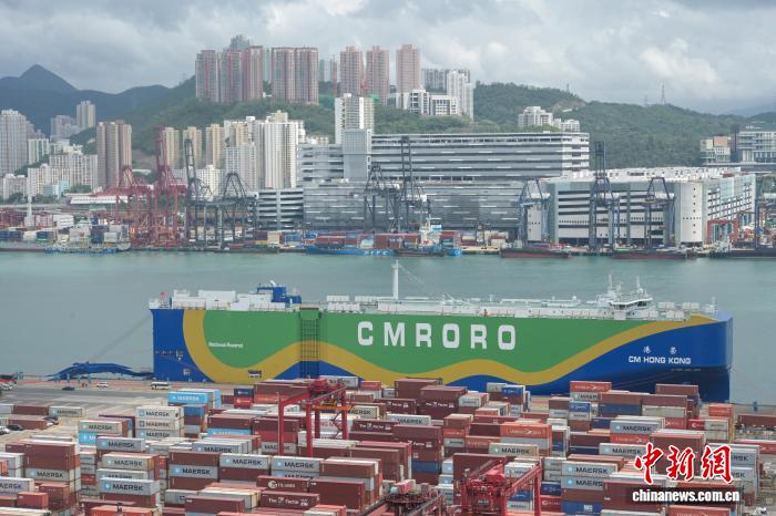 2025年9月28日,全球首艘9300CEU(标准车位)甲醇双燃料动力滚装船“港荣”轮(“CM HONG KONG”轮)首航香港仪式在香港举行。图为“港荣”轮。(资料图) 中新网记者 陈永诺 摄