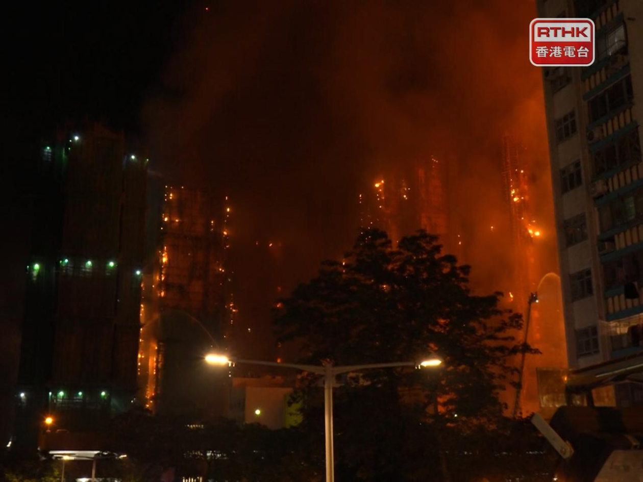 香港大埔宏福苑26日下午发生火灾。图源:香港电台网站