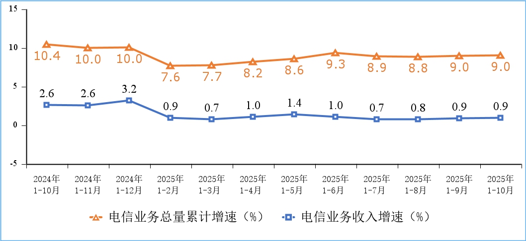据工业和信息化部网站消息,工信部发布2025年前10个月通信业经济运行情况。
