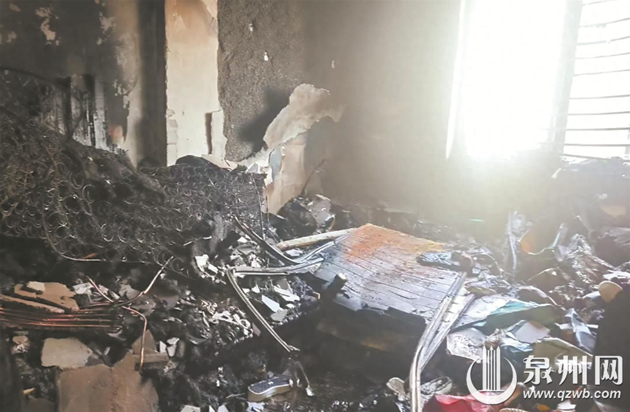 大火过后,失火套房内一片狼藉,其中有不少烧毁和没烧坏的鞋子、鞋盒。有居民反映,该租户从事电商行业,在屋内囤放大量鞋子。火灾发生后,屋内的人迅速逃生。