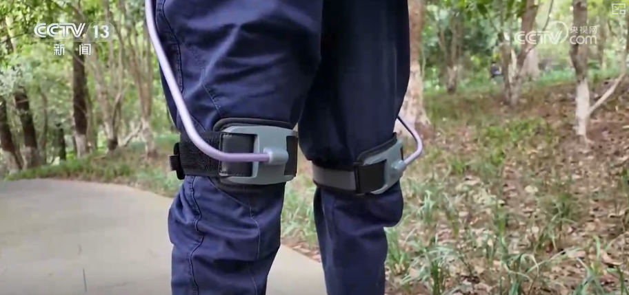 这套外骨骼机器人能够提供拉力,带动腿部运动,可以为登山人节省大约30%的体力消耗。