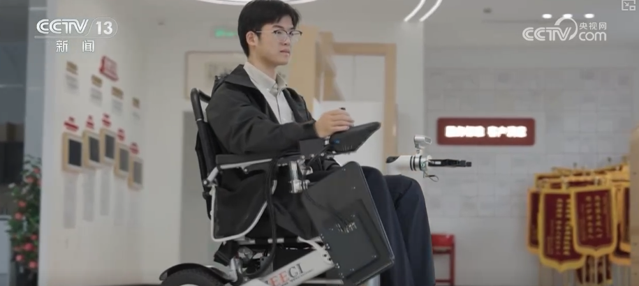 在杭州西湖区,工作人员正在对眼前这款智能轮椅进行技术升级。结合失能老人手脚行动不便的痛点,这款轮椅搭载了深度相机和智能机械臂,通过内置的AI算法,使用者只需和平常一样坐在上面,简单用语言表达需求,轮椅就可以判断路线,智能移动。