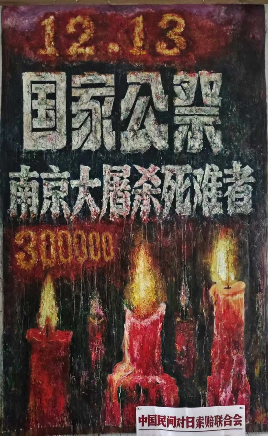 画家李云创作的悼念南京大屠杀死难者的油画。