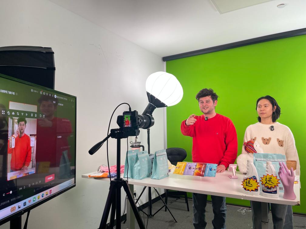 虹桥品汇直播基地的直播间内,不少“洋主播”正在镜头前带货。新华社发