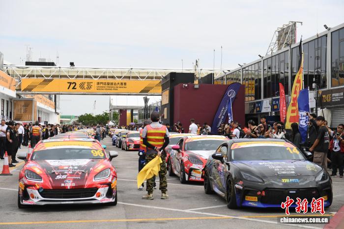 2025年11月13日,第72届澳门格兰披治大赛车开赛,澳门传奇的“东望洋赛道”再度响起赛车引擎的轰鸣声。图为参加练习赛的赛车准备出发。 中新社记者 郑嘉伟 摄