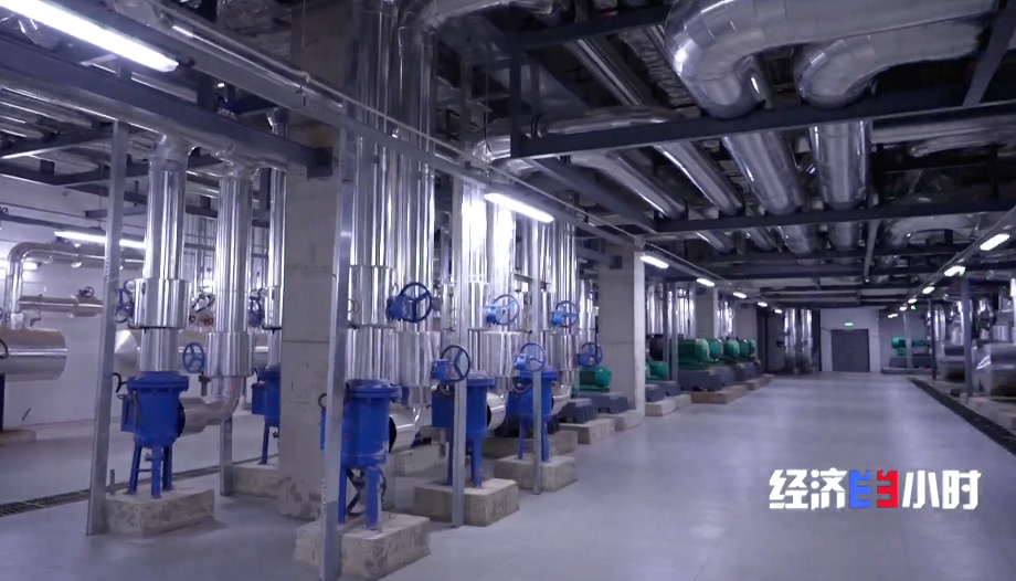 滑雪场工程师带记者来到滑雪场地下,如同蜘蛛网般的设备管道映入眼帘,这里便是整个雪场的核心机房。