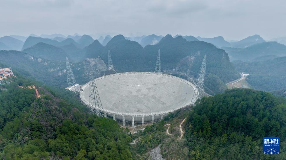 1月16日拍摄的“中国天眼”(无人机全景照片,维护保养期间拍摄)。