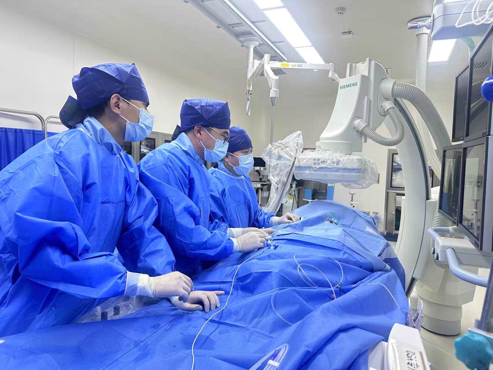 中山大学附属第一医院血管外科常光其教授、李梓伦教授团队顺利开展中国大陆首例EKOS超声波辅助溶栓系统治疗肺动脉栓塞。新华网发(受访者供图)