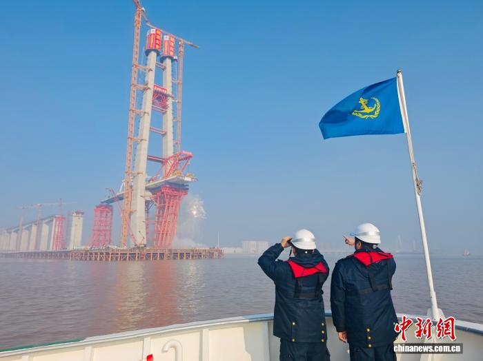 杭州湾作为世界三大强潮海湾之一,以强潮急流、快速冲淤和复杂通航环境著称,给桥梁建设带来严峻考验。面对挑战,嘉兴海事部门成立现场工作组,开通行政审批绿色通道,推行“一站式”服务保障,并充分发挥“VTS+CCTV+海巡艇+无人机”综合立体护航体系的作用,持续保障大桥建设安全高效推进。