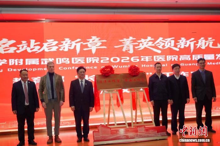 当天,广西医科大学附属武鸣医院在南宁市武鸣区举办2026年高质量发展大会,以“名医带培、医教协同、优质资源下沉”为主题,集中展示广西医科大学在附属医院建设、高层次医学人才引育、临床医学教育创新以及服务区域卫生健康事业方面取得的阶段性成果,推动基层医疗服务能力整体提升。