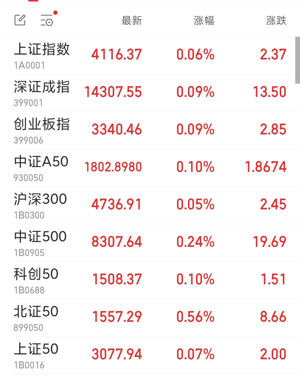 中新经纬1月20日电 周二,A股三大指数集体高开。上证指数涨0.06%,报4116.37点;深证成指涨0.09%,报14307.55点;创业板指涨0.09%,报3340.46点。