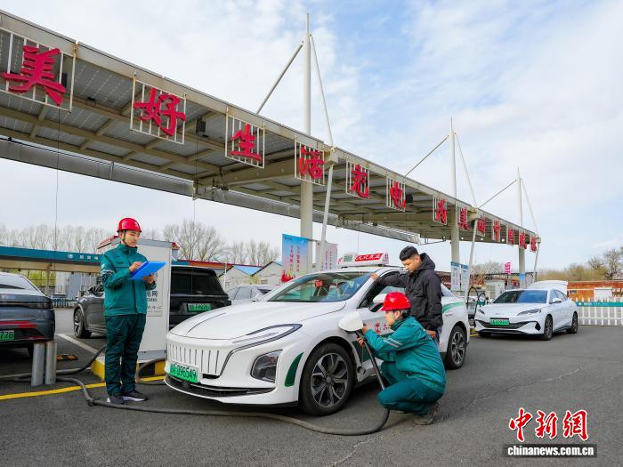 一新能源汽车在长春市蔚山路充换电站充电。(资料图)(国网吉林省电力有限公司供图)