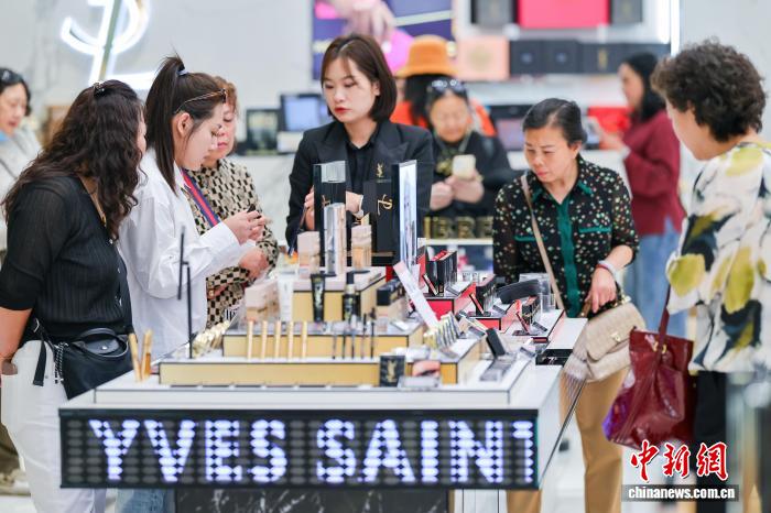 1月18日,顾客在cdf海口国际免税城选购化妆品。海南自贸港封关首月,离岛免税市场火爆。 中新网记者 骆云飞 摄