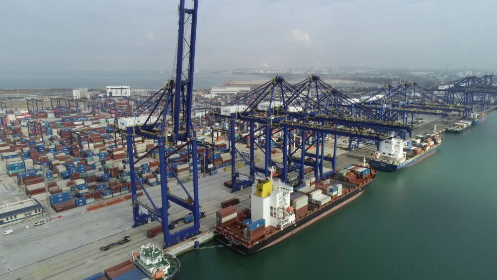 1月13日拍摄的洋浦国际集装箱码头(无人机照片)。新华社记者吴茂辉 摄