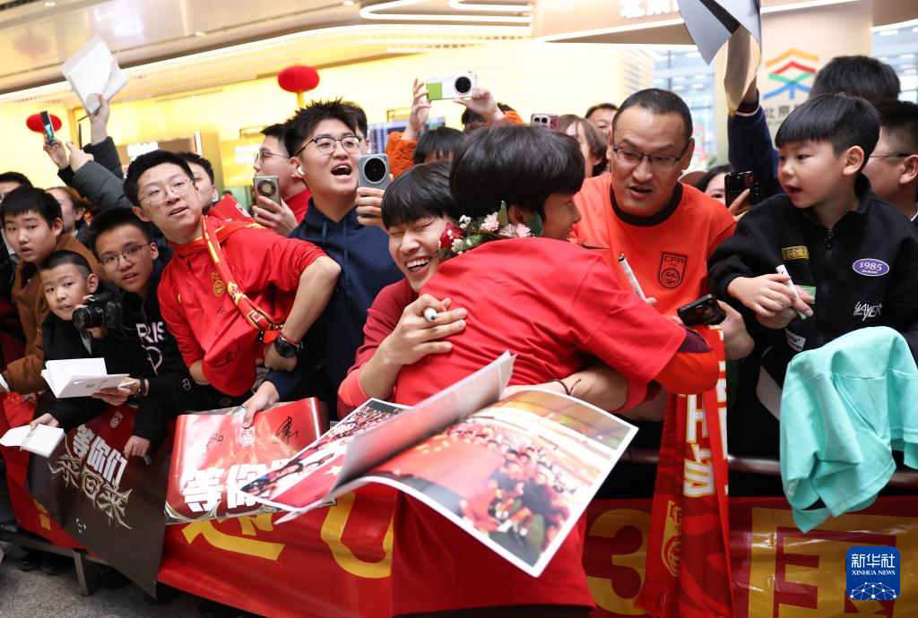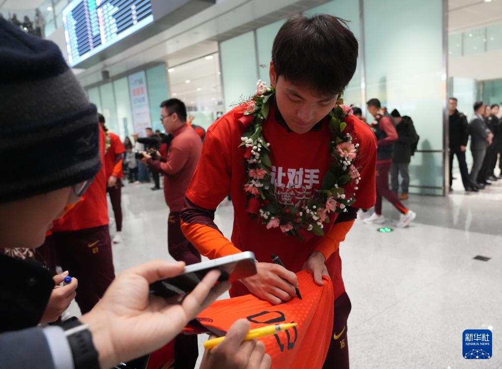 1月26日,在沙特阿拉伯夺得U23男足亚洲杯亚军的中国队抵达北京大兴国际机场。