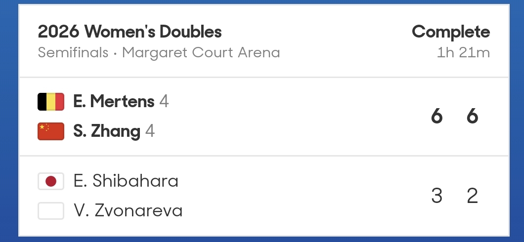 北京时间1月29日,2026澳网女双展开半决赛较量,中国球员张帅搭档比利时球员梅尔滕斯直落两盘击败柴源瑛菜/兹沃娜列娃。老将张帅时隔七年再进澳网决赛。
