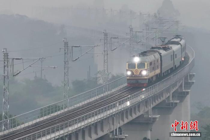图为2025年11月,检测列车正在通过隆泸叙铁路高架桥梁段(资料图)。蜀道铁投集团供图