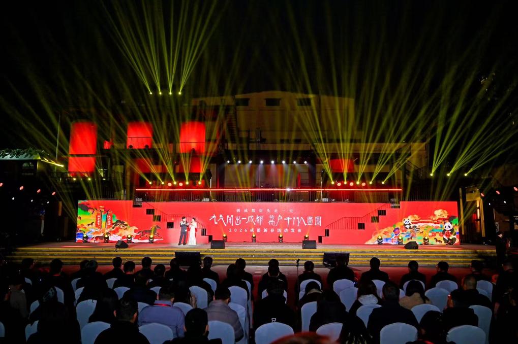由成都市文化广电旅游局主办的2026成都新春活动2月4日晚在蓉发布,涵盖9大重点主题场景活动、9大特色玩法的文旅盛宴正式登场,向市民游客发出新春邀约。
