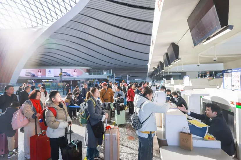 2026年2月2日,旅客在北京大兴国际机场办理值机。当日,为期40天的2026年春运拉开帷幕。中新社记者 贾天勇 摄