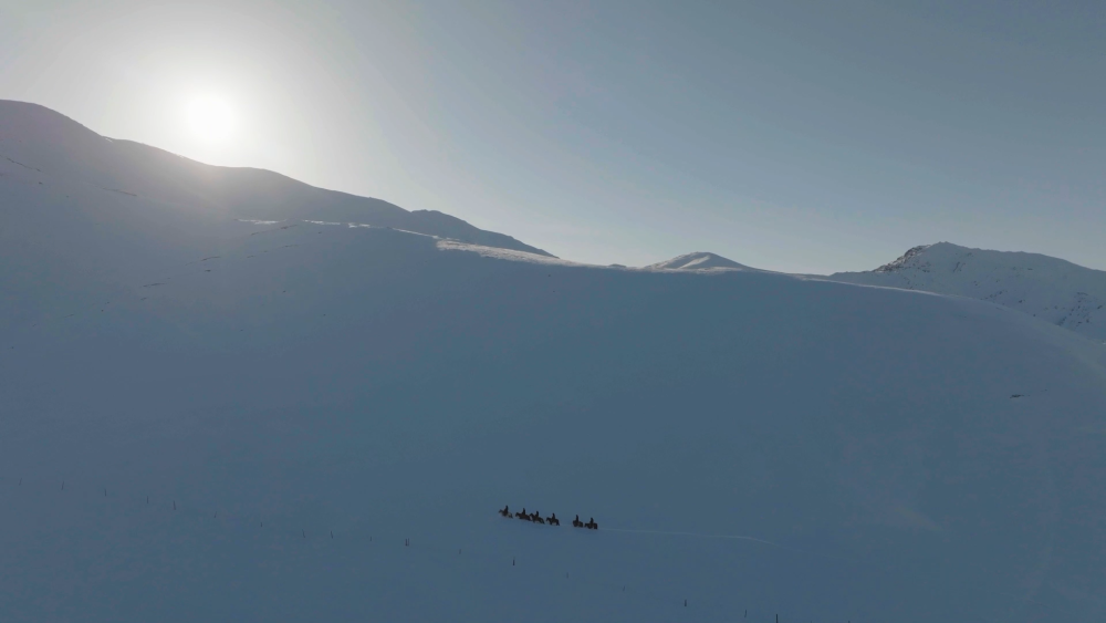 在如刀的风中和辽阔的雪原,一群年轻的骑士策马前行,即使脸被风吹红,手脚冻开裂,也没有停下脚步。