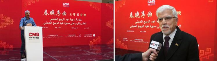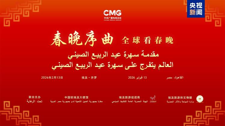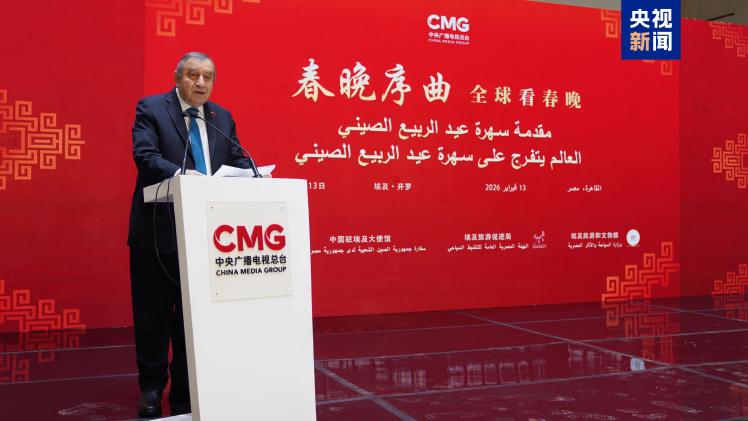 当地时间2月13日,“春晚序曲 全球看春晚”埃及专场活动在开罗举行。本次活动由中国中央广播电视总台与中国驻埃及大使馆、埃及旅游和文物部、埃及旅游促进局共同主办。中宣部副部长、中央广播电视总台台长慎海雄作视频致辞。中国驻埃及大使兼驻阿盟全权代表廖力强,埃及政府代表、埃及外交部亚洲事务部助哈姆扎,埃及前总理沙拉夫出席活动并致辞。埃及考古学家、前文物部长哈瓦斯,埃及旅游促进局主席代拉提芙,埃及外交事务委员会执行主任伊扎特,巴德尔大学副校长巴斯欧尼,阿盟非洲事务司司长布斯坦吉,阿盟理事会秘书处主任法赫米等中埃两国政界、学术界、媒体界代表200余名嘉宾参加活动。