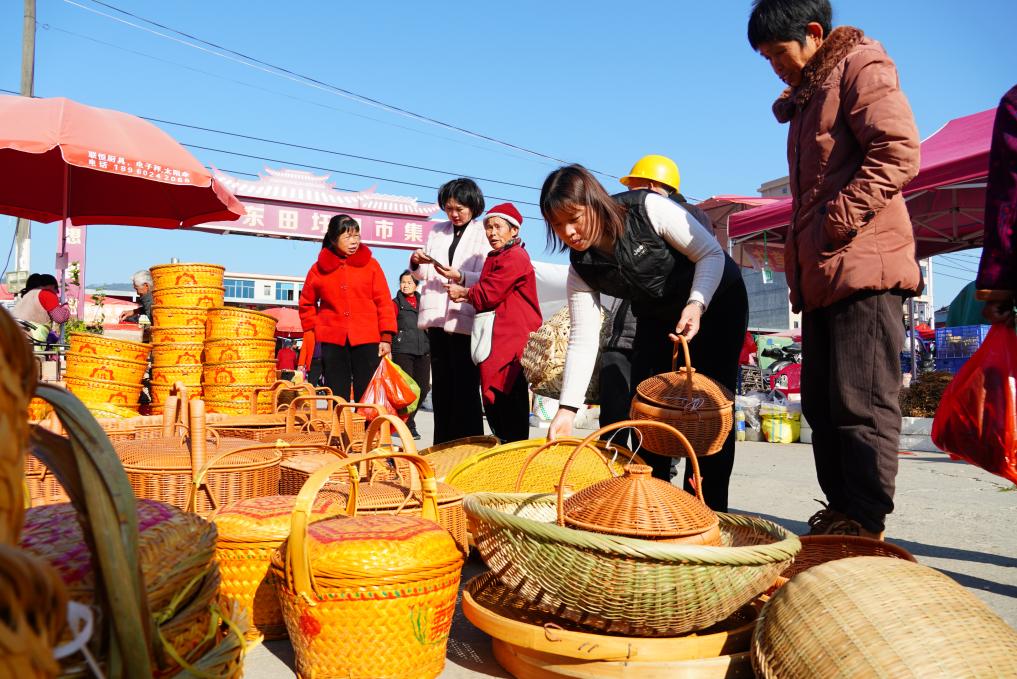 一些南方地区称村镇市集为“圩”。东田镇“赶圩”的历史悠久,至今已延续400多年。一位摊主告诉记者,“农历每月逢四逢九的日子便是东田镇的赶圩日。年关前的集日人尤其多,大家都在热热闹闹地囤年货。”