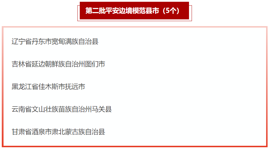 5个第二批平安边境模范县市名单。(国家移民管理局微信公众号截图)