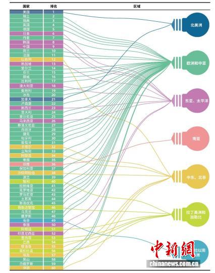 《国家创新指数报告2025》发布,60个国家创新指数综合排名示意图。中国科学技术发展战略研究院 供图