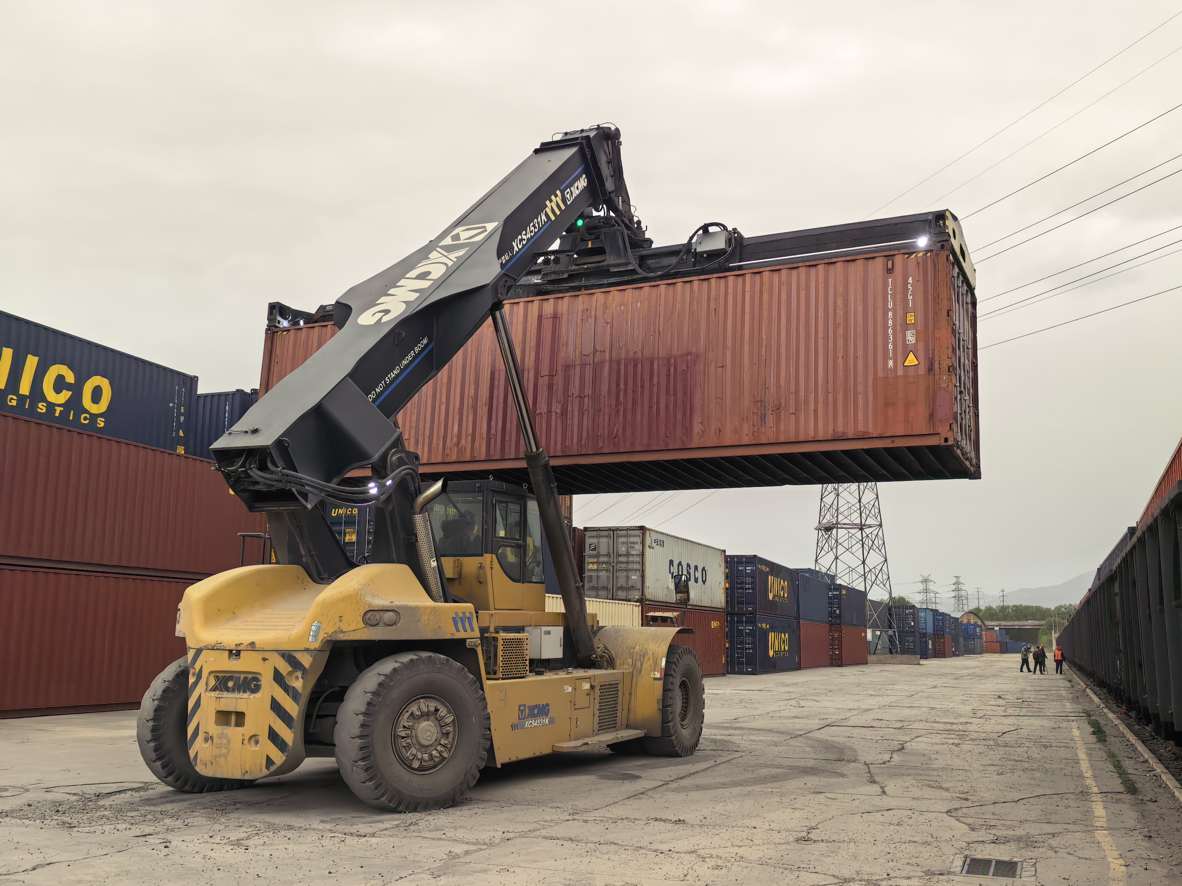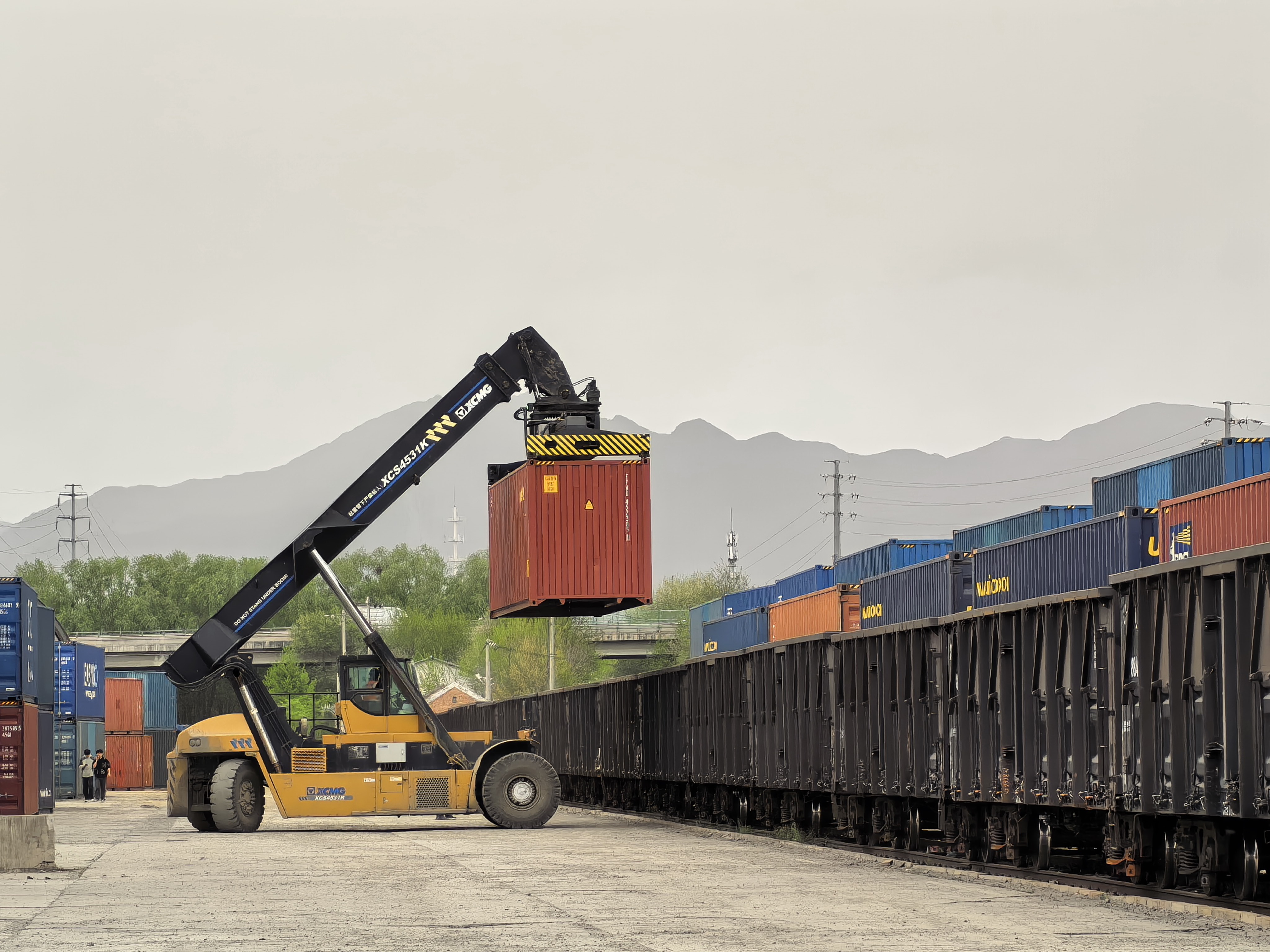 北京至中亚图定班列正在装载货物。北京国际陆港供图