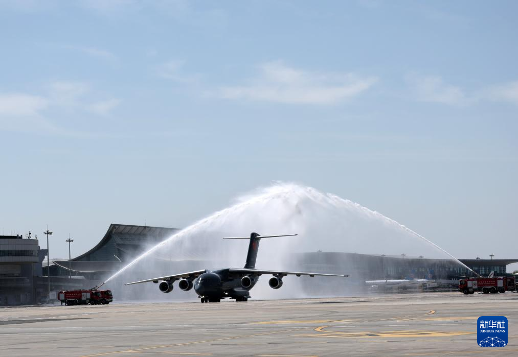 22日上午,中韩双方在韩国仁川国际机场举行志愿军烈士遗骸交接仪式。9时50分许,呼号为“荣归50”的运-20B起飞。进入中国领空后,呼号为“红鹰”的4架歼-20迎接护航,“双20”列阵长空致以崇高敬意。11时25分,运-20B平稳降落在辽宁沈阳桃仙国际机场,机场以“过水门”最高礼遇为英灵洗尘。