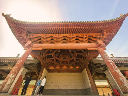 在临汾,采风团还参观了一座特别的戏台——襄汾县汾城古建筑群城隍庙戏台,和它毗邻的是游戏《黑神话:悟空》的取景地鉴察坊。这座戏台主体建构为明代所建,系重檐歇山顶的过路式戏台,设计独特,上为舞台,下为人行通道,全国重点文物保护单位。其观众区的地面是我国唯一保存较完整的地面铺设,是研究古代戏曲发展的珍贵实物。