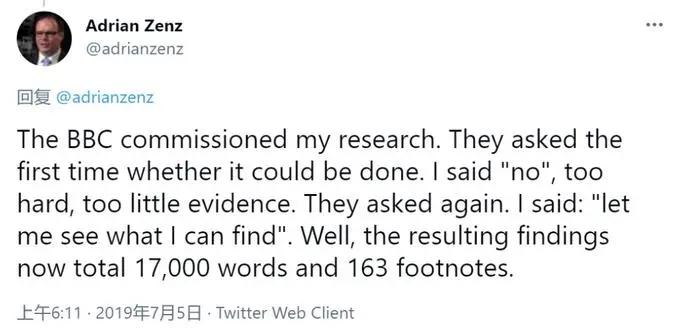 要了解这个离谱的谎言是如何被炮制出来,就不得不提这个人——郑国恩(Adrian Zenz)。
