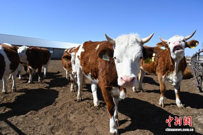 4月底的科尔沁大地,春风拂面。内蒙古自治区通辽市科尔沁左翼后旗的通辽禾牧科技有限公司繁育基地内,不同生长阶段的西门塔尔牛被划分在带犊舍、待产舍、隔离舍等区域,实行分区饲喂。