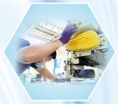万基万公司砂轮生产部工作人员正在检测砂轮硬度。金成勋摄