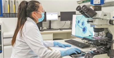 天津市肿瘤医院空港医院医务人员在化验样本。