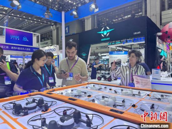 国外采购商咨询新型无人机。 记者 索有为 摄