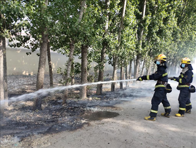 图三:2023年5月2日,河南省济源市消防救援支队济渎路特勤站在处置飞絮引发的火情(来源:新华社)