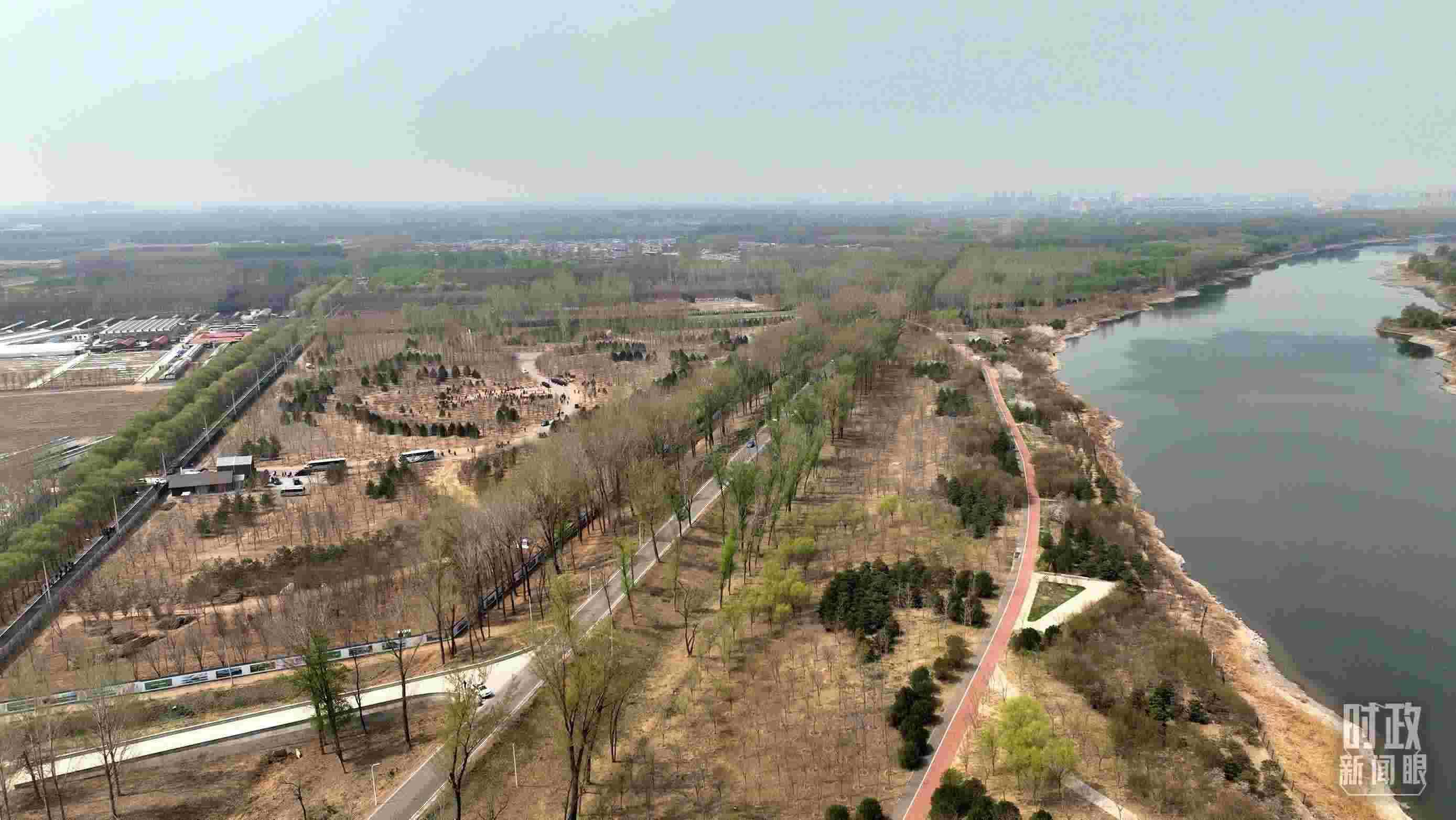 △远眺北京市通州区潞城镇植树点。(总台央视记者刘岳拍摄)