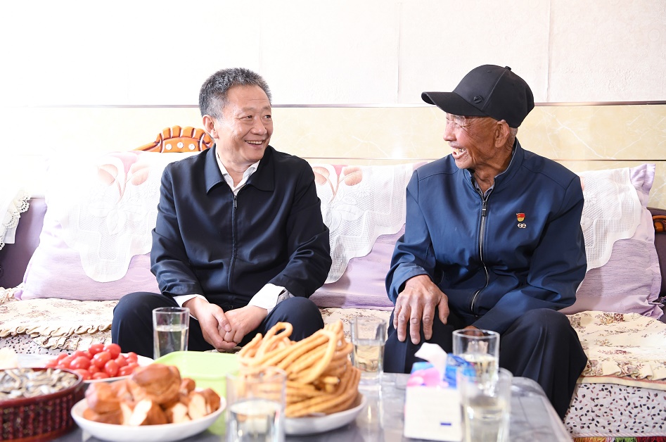 孙绍骋在庆丰村新村走访村民赵根德,与他们夫妇细算收入账。内蒙古日报社融媒体记者 袁永红摄
