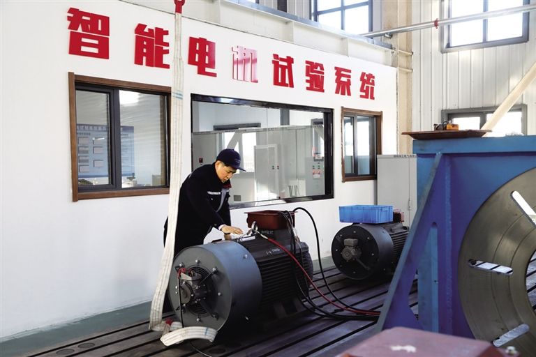 内蒙古优普森电气有限公司生产车间内一台永磁电机正在进行出厂前试验。 记者 刘向平 摄