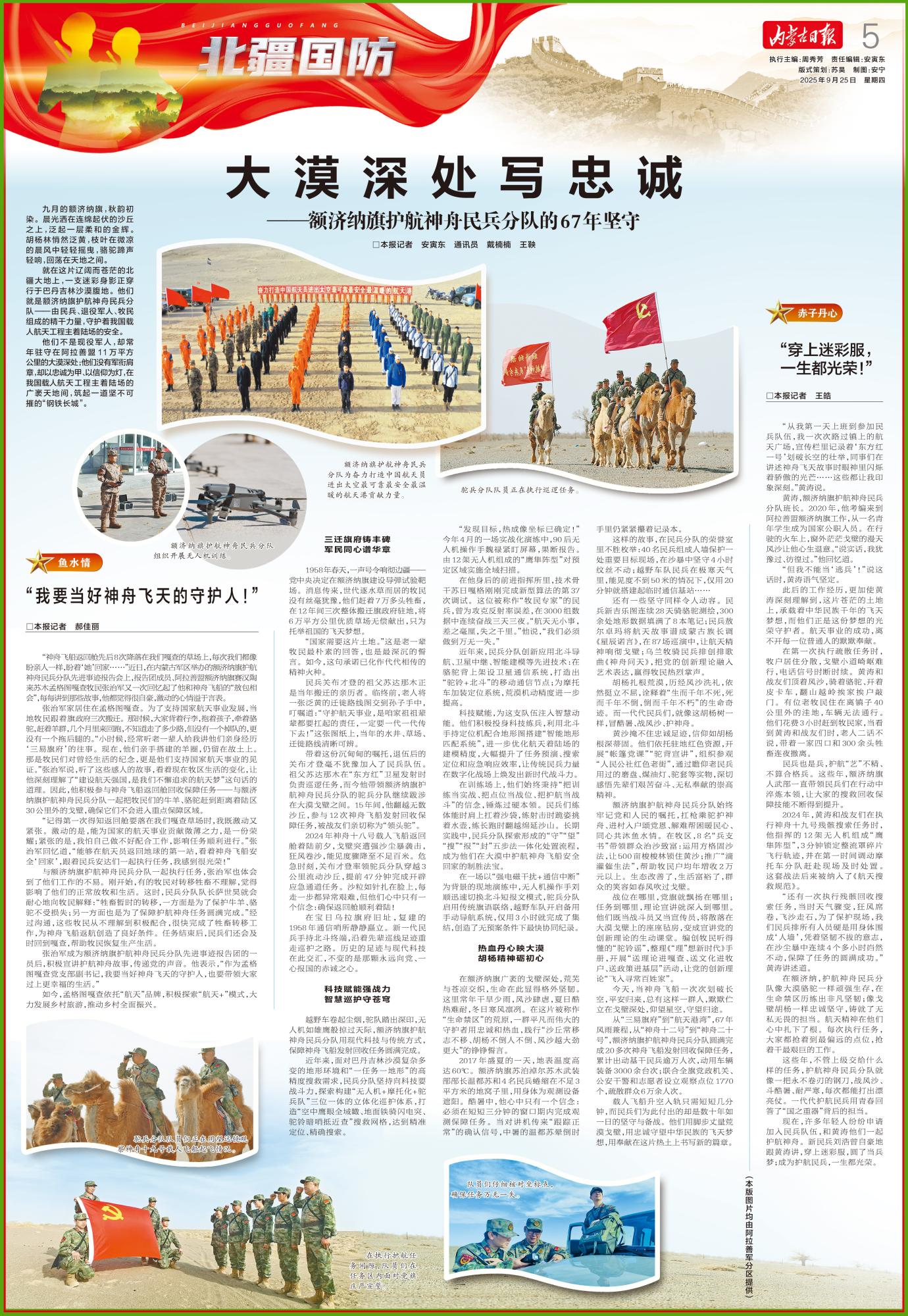 还有一些坚守同样令人动容。民兵新吉乐图连续28天骑骆驼测绘,300余处地形数据填满了8本笔记;民兵敖尔卓玛将航天故事谱成蒙古族长调《星辰诺言》,在87场巡演中,让航天精神响彻戈壁;乌兰牧骑民兵排创排歌曲《神舟问天》,把党的创新理论融入艺术表达,赢得牧民热烈掌声。