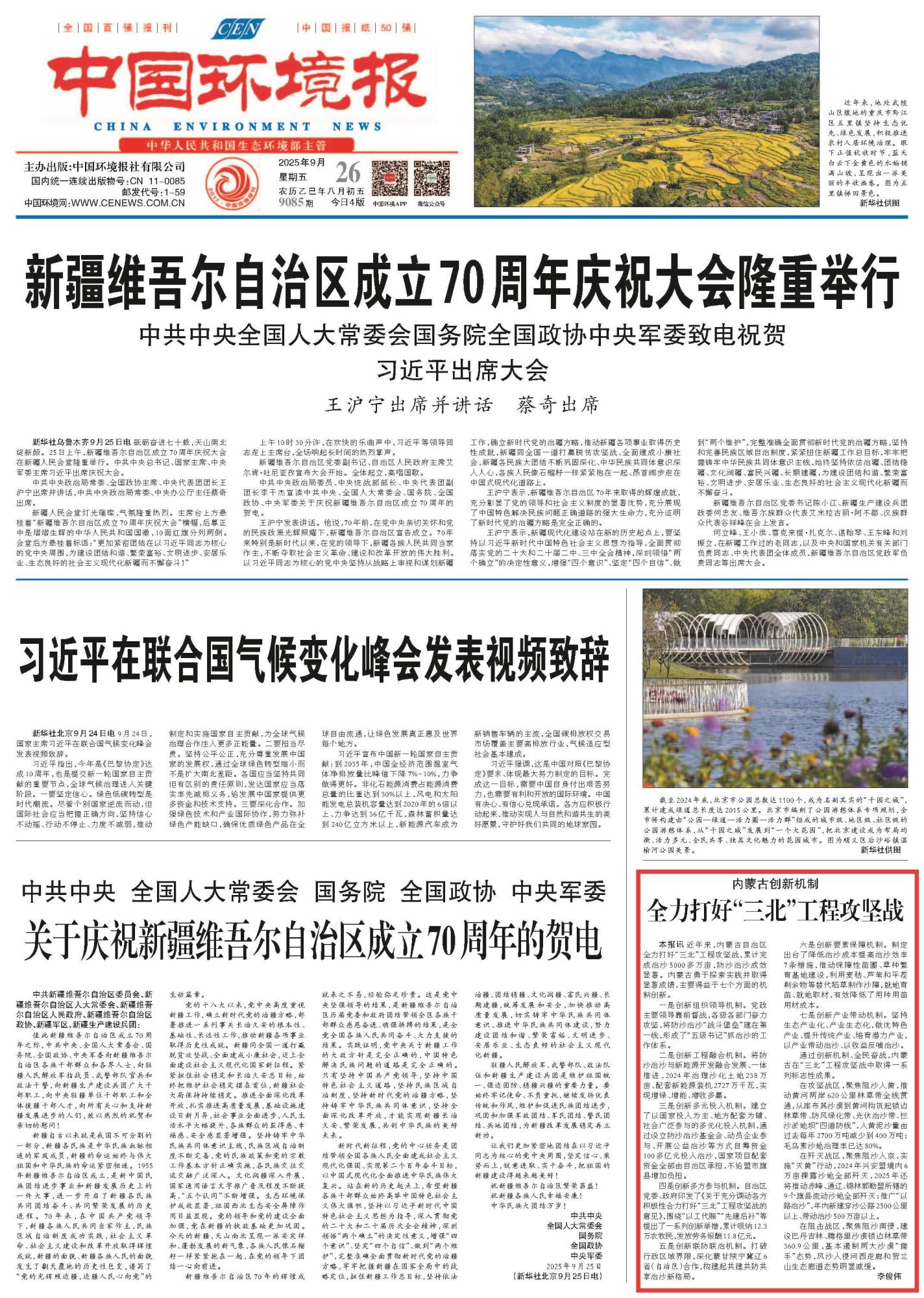 2025年9月26日《中国环境报》第1版刊发了《内蒙古创新机制 全力打好“三北”工程攻坚战》的文章,报道了内蒙古自治区全力打好“三北”工程攻坚战,累计完成治沙5000多万亩,防沙治沙成效显著。内蒙古勇于探索实践并取得显著成绩,主要得益于七个方面的机制创新。
